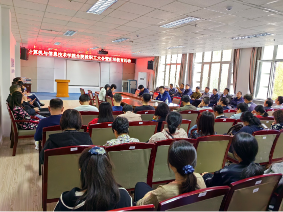 2023年9月28日,公司在1教D座306会议室组织召开了全院教职工大会暨纪法教育活动。党委书记任艳秋,党委副书记胡畔,副经理张强、刘志刚出席了会议,会议由党委书记任艳秋主持。