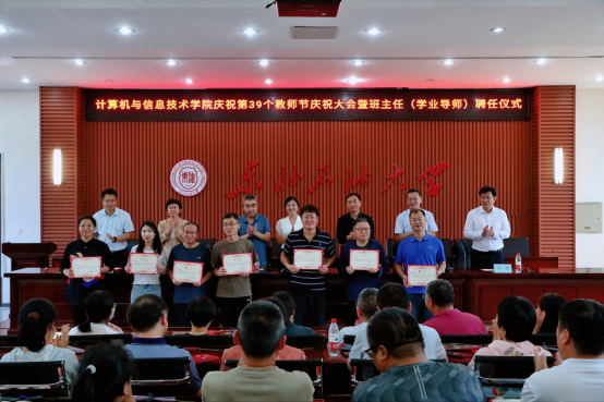栉风沐雨秉初心,砥砺奋进续华章。9月6日,u8国际平台在第一教学楼111会议室举办庆祝第39个教师节庆祝大会暨班主任(学业导师)聘任仪式。公司领导班子成员任艳秋、田枫、胡畔、张强、刘志刚,近2年退休教师代表,全院教师以及公司各年级员工班长、团支部书记参加会议。会议由党委副书记胡畔主持。