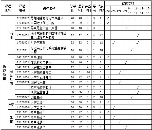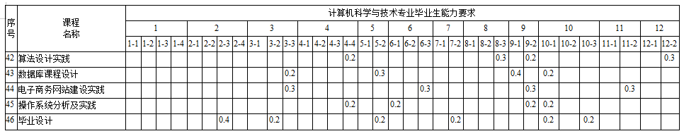 本专业毕业要求对培养目标的支撑关系矩阵如表所示。