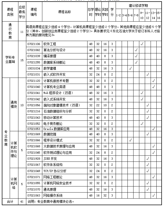 本专业秉承大庆精神,依托石油行业背景,培养适应国家经济建设、科学技术进步和社会发展需要,德智体美劳全面发展,具有良好的科学文化素养、社会责任感、创新意识和国际视野,掌握计算机软硬件基本理论知识和技能的高素质应用型人才,能够在研究机构或企事业单位从事与计算机有关的研究、设计、开发、维护或管理工作。具体为: