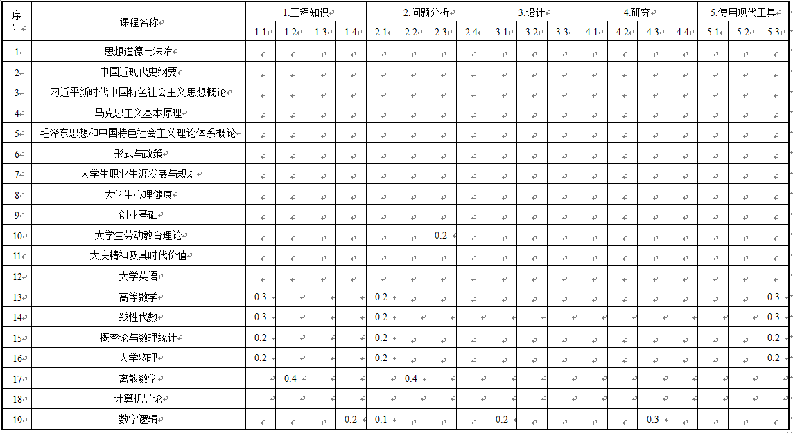 注:H代表教学环节对毕业要求高支撑,M代表教学环节对毕业要求中支撑,L代表教学环节对毕业要求低支撑。