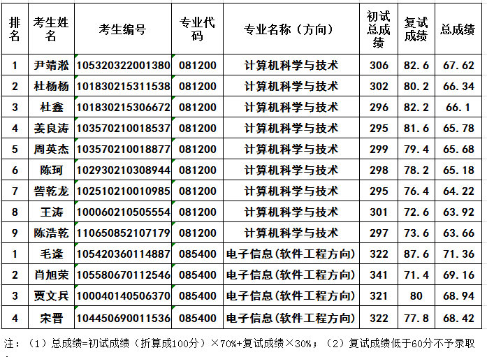第四批次研究生复试成绩(计算机科学与技术与电子信息专业)