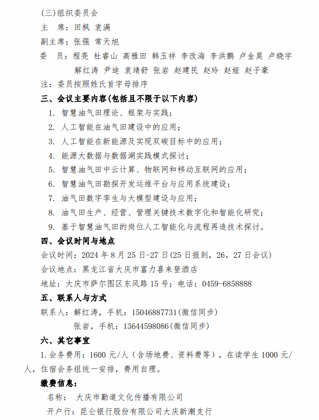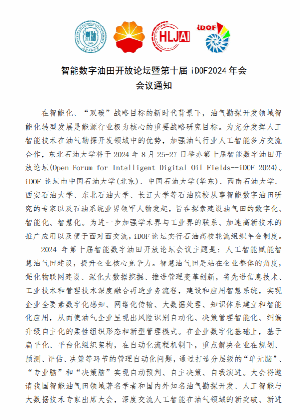 智能数字油田开放论坛暨第十届 iDOF2024年会会议通知