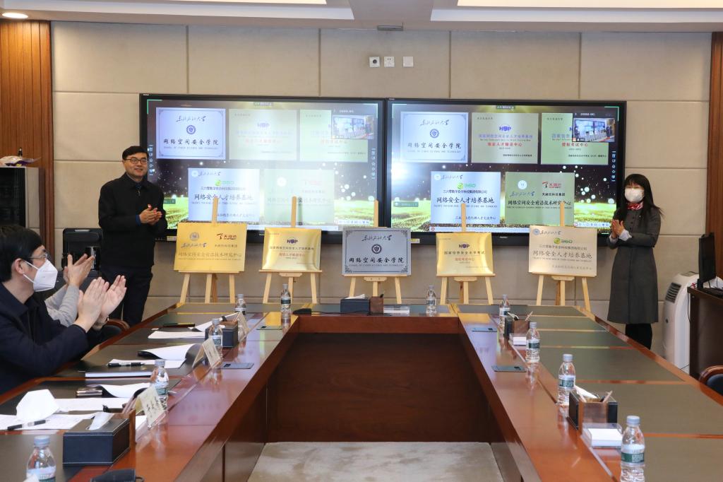 会上,于长青、董宏丽为u8国际网站网络空间安全公司、三六零数字安全科技集团有限公司网络安全领域产业人才基地(工业和信息化部人才交流中心授牌)、国家网络空间安全人才培养基地(中国信息安全测评中心授牌)、国家信息安全水平考试管理中心(国家信息安全水平考试授权考试中心授牌)及u8国际网站-天融信科技集团网络空间安全前沿技术研究中心揭牌。