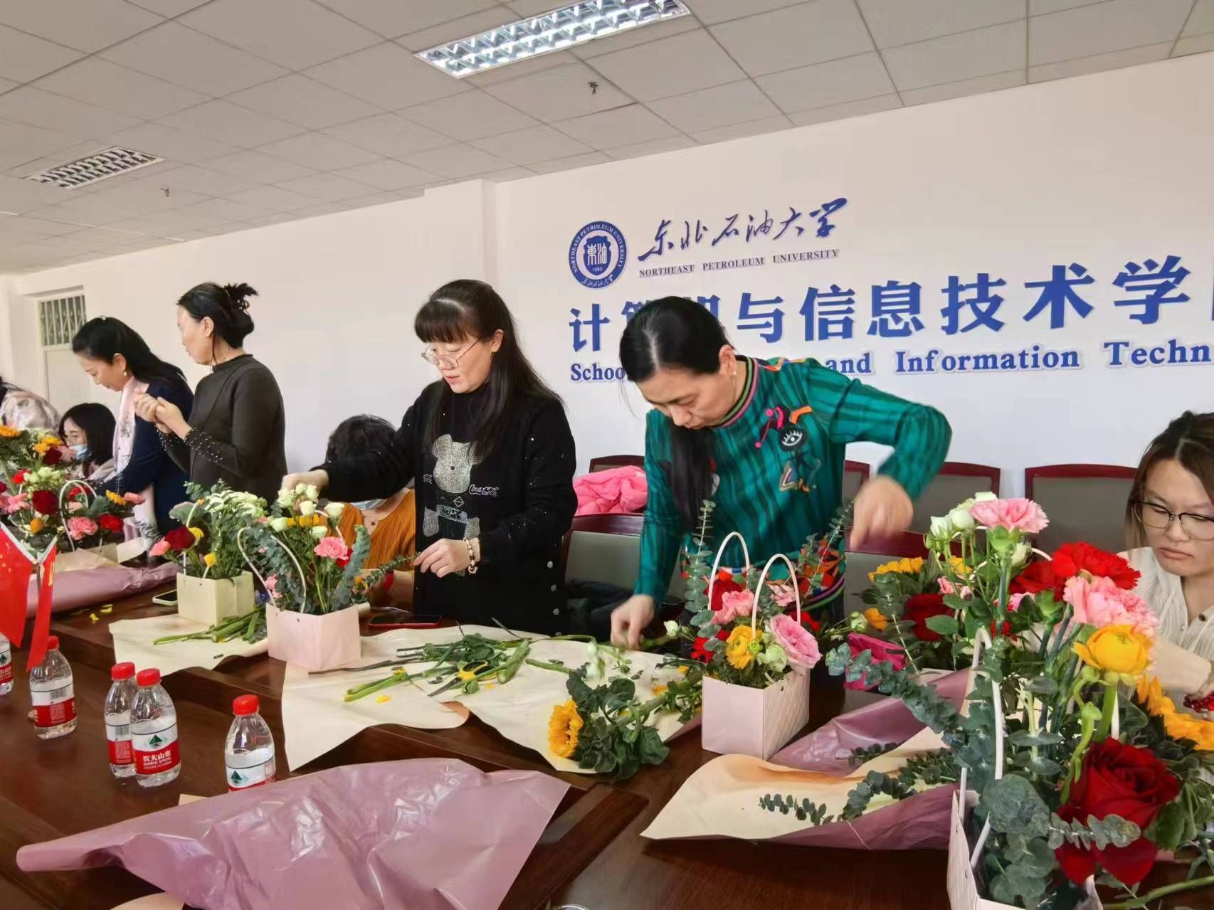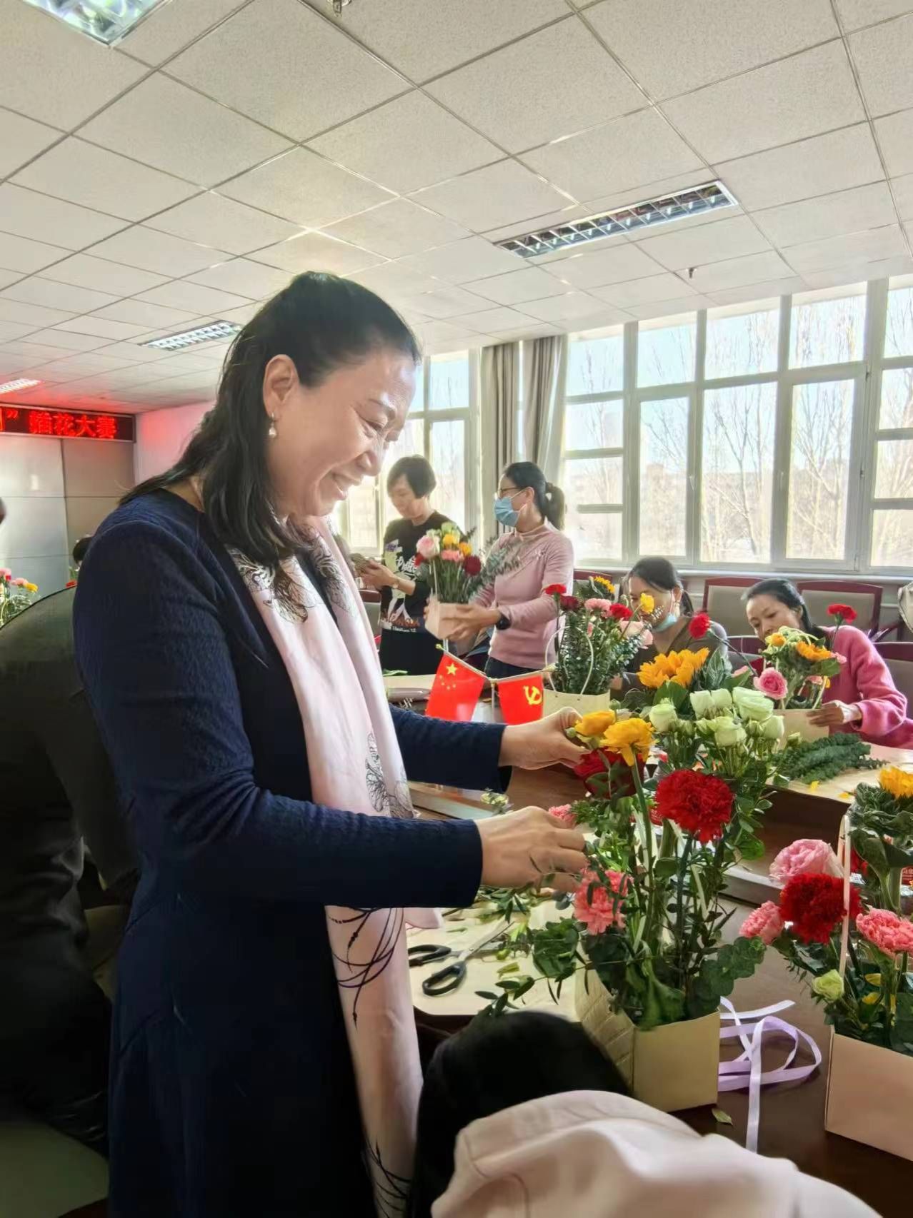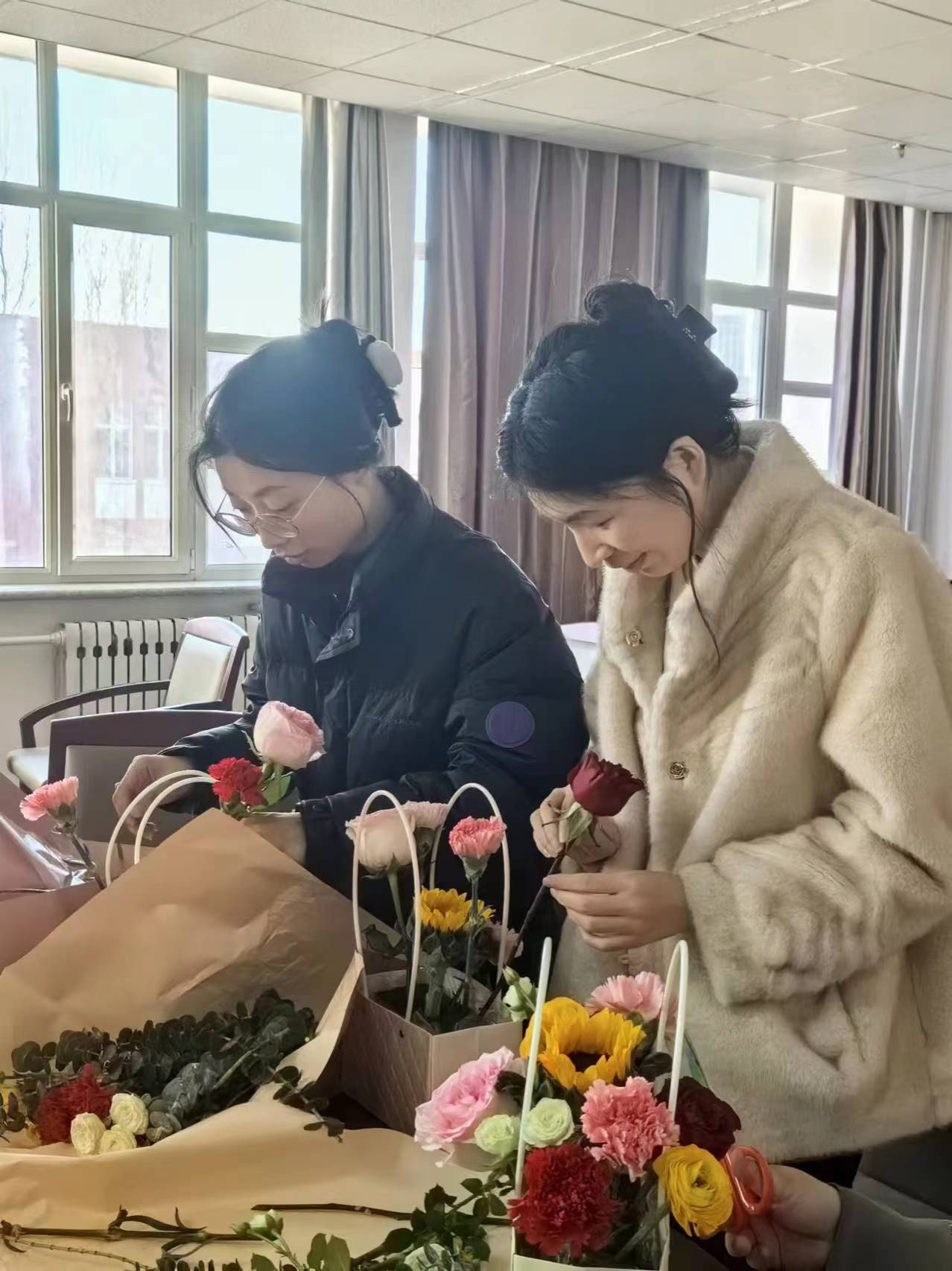 活动现场气氛热烈而温馨,公司的女教职工们亲手制作属于自己的插花作品。她们用灵巧的双手,将一束束鲜花精心搭配,创造出一幅幅生机盎然、寓意深远的花艺景象,生动诠释了“巾帼不让须眉”的精神风貌和“共创新时代”的坚定信念。