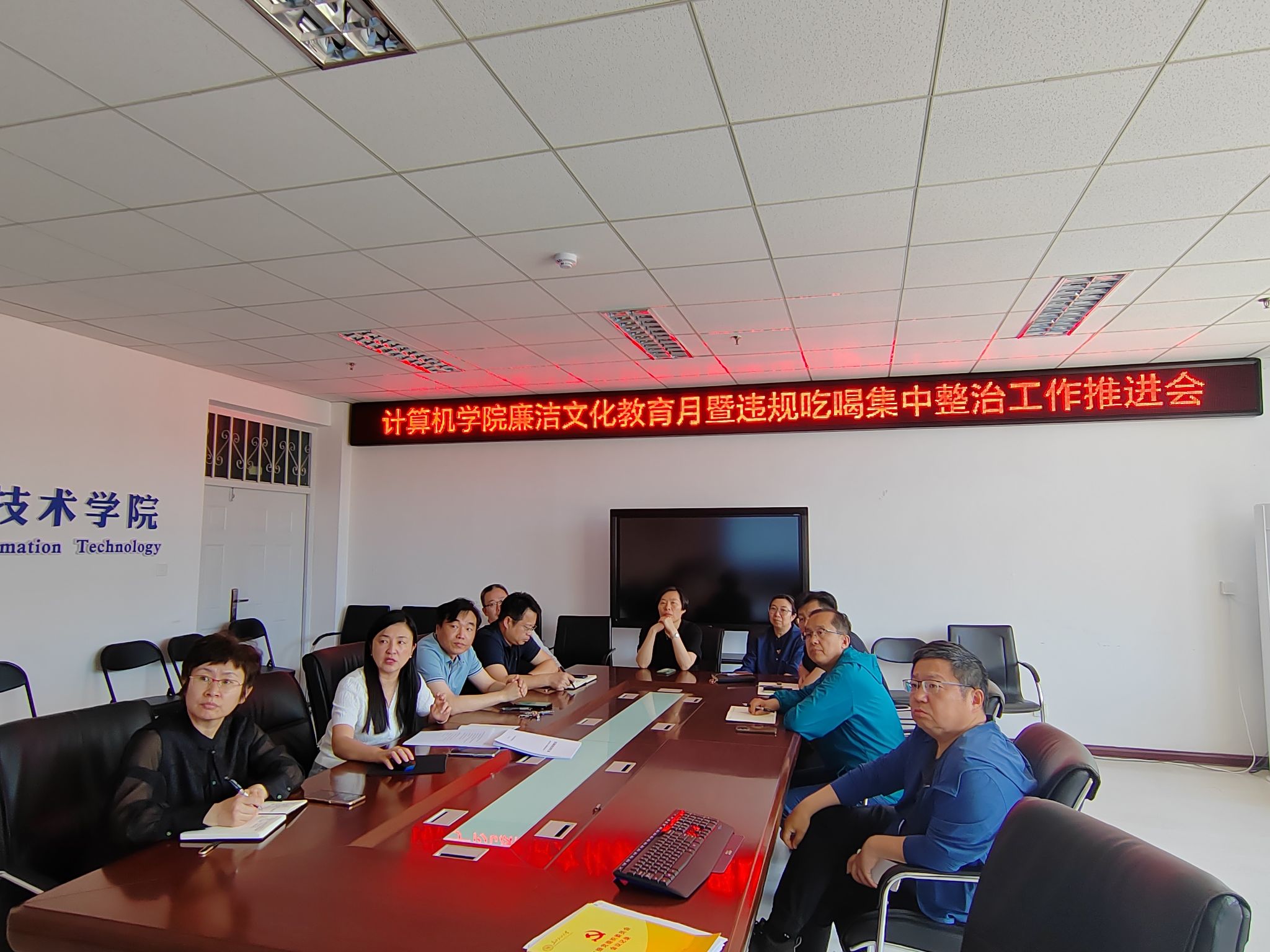 为深入贯彻落实党中央和公司党委关于推进新时代廉洁文化建设的要求,强化师生廉洁意识,涵养风清气正的廉洁育人环境,6月7日,公司党委书记任艳秋在1教D座309会议室主持召开廉洁文化教育月暨违规吃喝集中整治工作推进会。公司领导、党委委员、党支部书记参加会议。