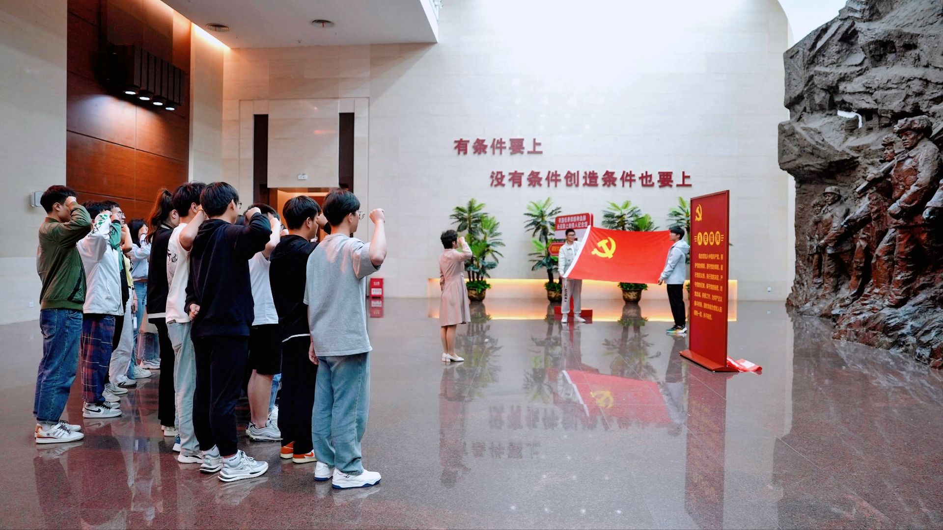 参观结束后,毕业班党员在党委副书记胡畔同志的带领下,面向鲜红党旗,共同重温入党誓词。党员们声音洪亮、激情澎湃,在铮铮誓言中重温了入党初心,在入党誓言中强化了党员身份认同,坚定了理想信念。