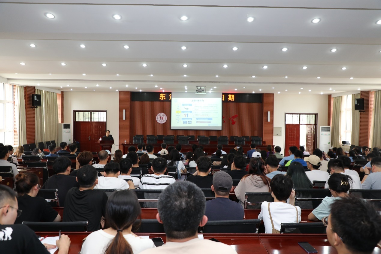 董宏丽在报告会上致辞。她对陈良富一行做客 “东油大讲堂”表示衷心感谢和热烈欢迎,并指出,“碳达峰”与“碳中和”是国家重大战略决策,将改变能源产业格局,重构整个制造业。陈教授的这一报告非常必要,非常及时,相信对我们实现碳中和的目标会起到非常大的助推作用。