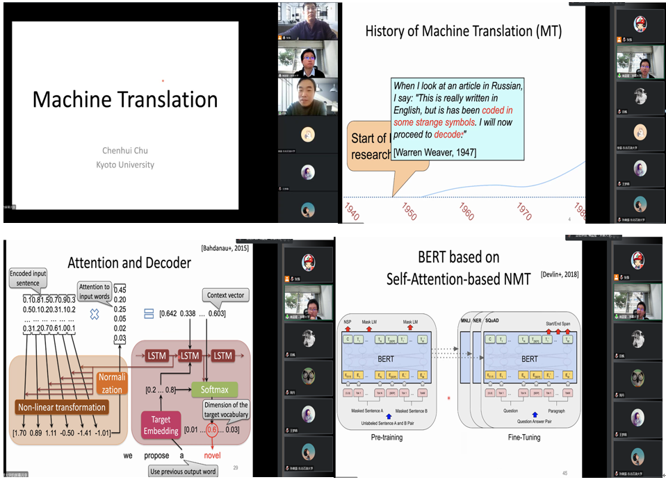 2022年12月19日,应公司邀请,京都大学褚晨翚教授为公司师生作了题为《机器翻译》的专题学术报告。本次报告由张强教授主持,田枫经理、公司教师与研究生共100余人次参与线上交流。本次报告为u8国际网站“第五届国际学术交流周”系列讲座之一。