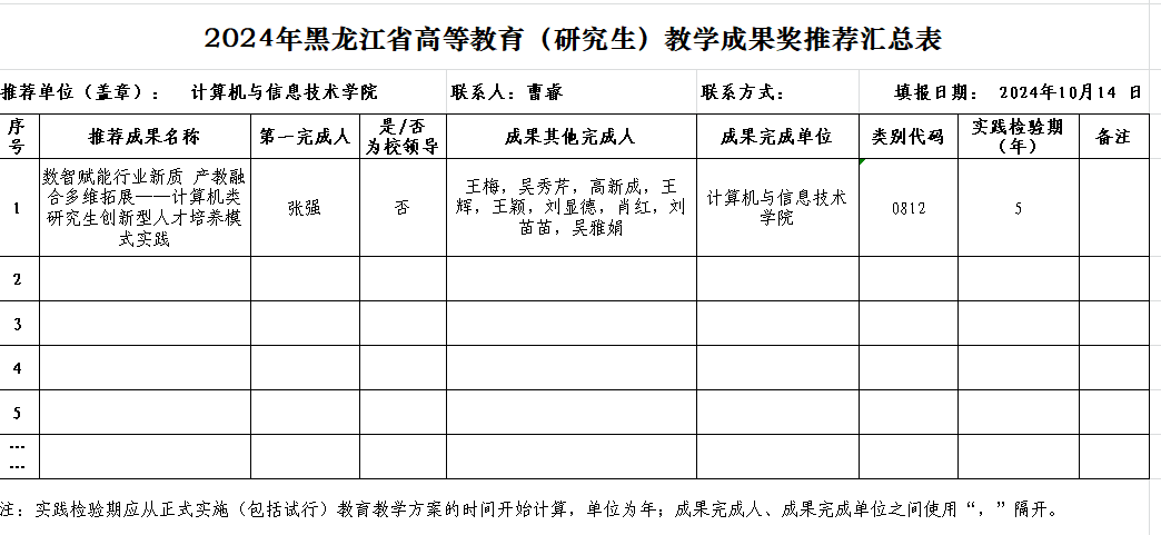 2024年黑龙江省高等教育(研究生)教学成果奖推荐公示