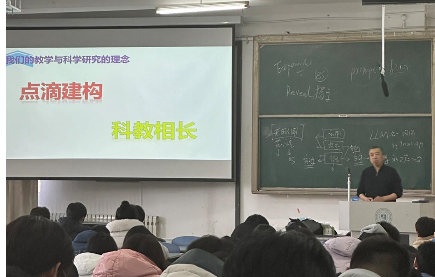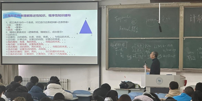 计科方面,首先,袁教授向同学们详细介绍了计算机科学与技术专业的核心课程、技能需求、就业方向等。同时也希望同学们能在以后的学习中努力学好计算机基础知识、扎实计算机技术。