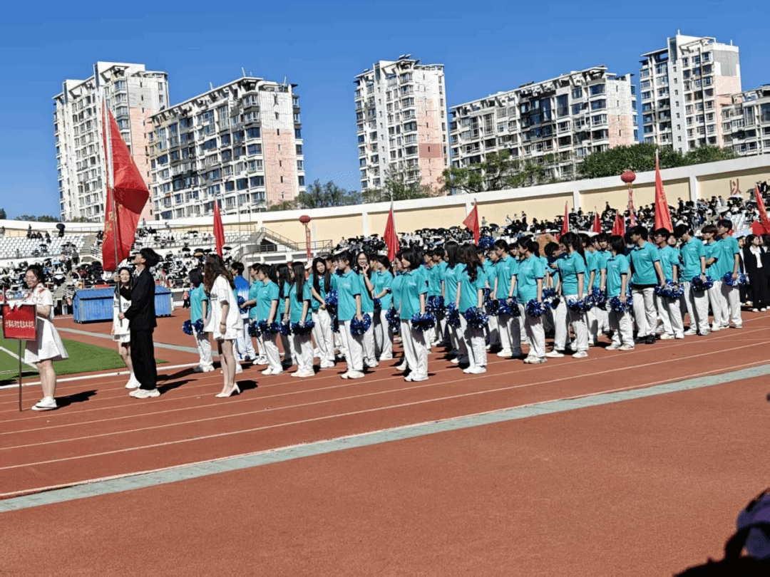 开幕式上,场面恢宏壮观。铁人国旗护卫队、校旗队等组成的32个方阵依次有序入场。u8国际平台方阵的同学们精神抖擞,他们身着印有计算机院的绿色服装,手中挥舞着手花,以整齐划一的步伐和别出心裁的啦啦操展示,彰显着计算机人的创新与智慧,赢得了现场观众的阵阵掌声与喝彩。