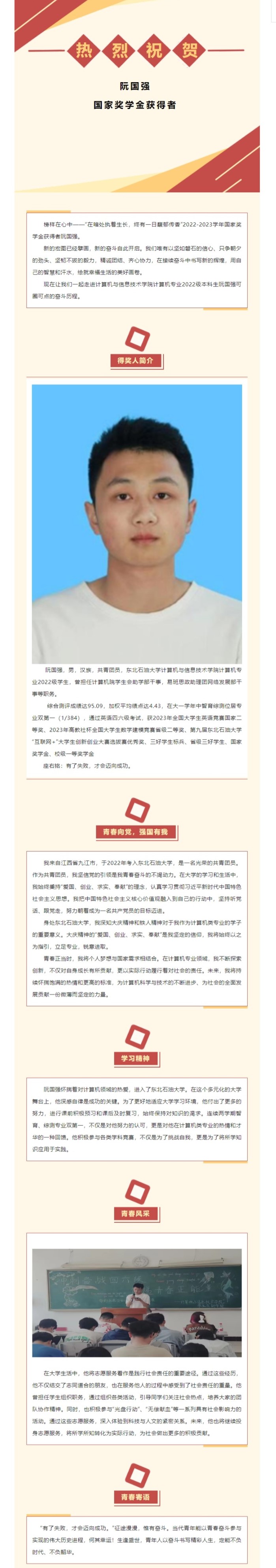 【计算机·榜样引领】2022-2023学年国家奖学金获得者-阮国强